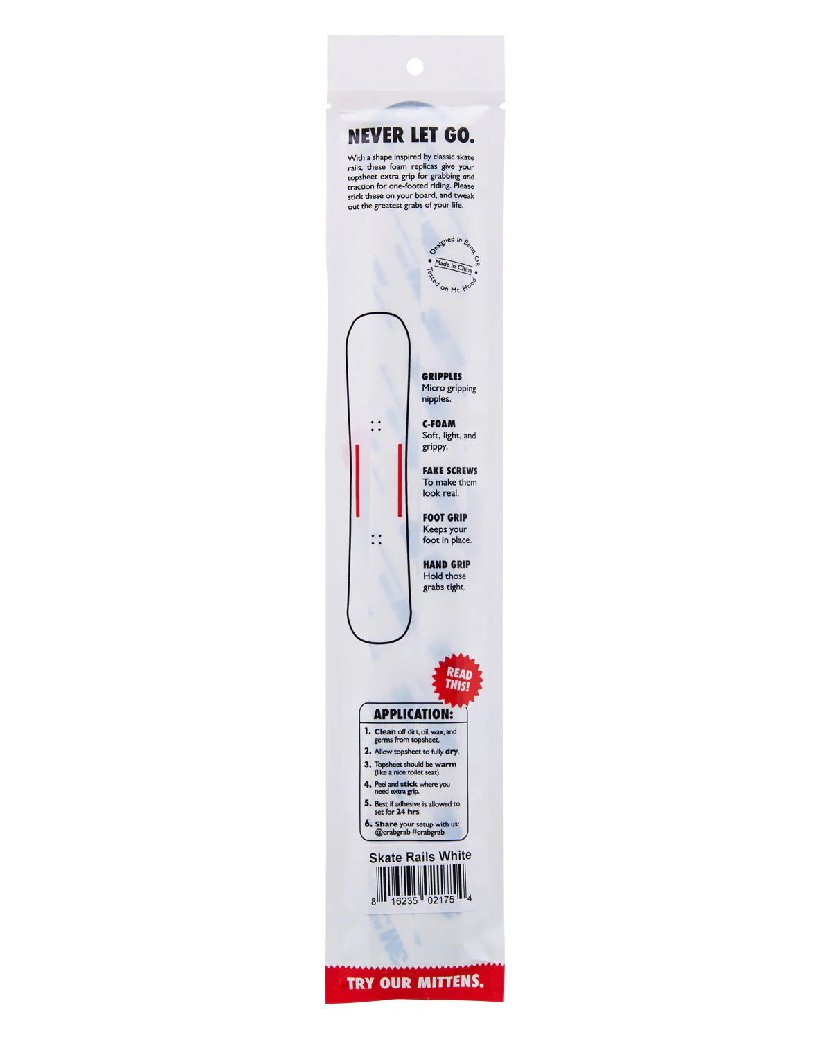 The Crab Grab Skate Rails bring a retro skateboard vibe to your snowboard while delivering functional grip exactly where you need it. Inspired by old-school deck rails, these slim strips of Crab Grab’s grippy C-Foam™ material give you a reliable traction zone for one-foot riding, lift exits, or tweaking grabs in style. Lightweight, low-profile, and endlessly versatile, the Skate Rails can be placed straight, angled, or offset — however you want to customize your board’s look and feel. With heavy-duty peel-and-stick adhesive and weatherproof durability, they’ll stay locked in through icy days, slushy spring laps, and everything in between. A stomp pad that doubles as a style statement, Skate Rails keep you in control while turning your setup into a one-of-a-kind ride.